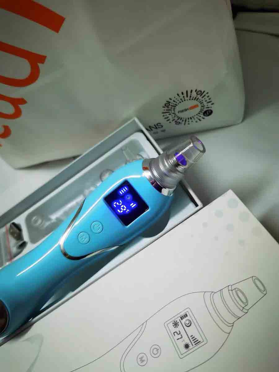 Máy thiết kế khá đẹp, có nhiều đầu hút tiện chăm sóc da. Lực hút mạnh hút đc mụn sâu. Dùng đầu hút to lực hút sẽ mạnh hơn. Pin dùng đc bao lâu có bền hay ko thì phải dùng tgian mới biết đc.