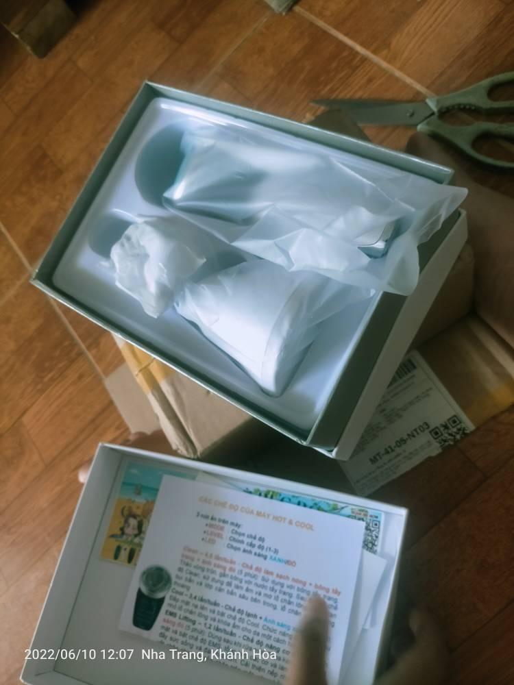Máy nhìn sang xịn mịn, cầm đã tay lắm. Đã test thử máy, tác dụng thì còn tgian, nhưng sd ban đầu thấy oke, rất thích. Hai chế độ ánh sáng, đỏ nóng, xanh lạnh. Tùy theo mức độ nhạy cảm da mà có 3 levels. Shop hướng dẫn rất chu đáo và nhiệt tình. Da mình thì màu đỏ chọn mức 3 sẽ hơi nóng quá.