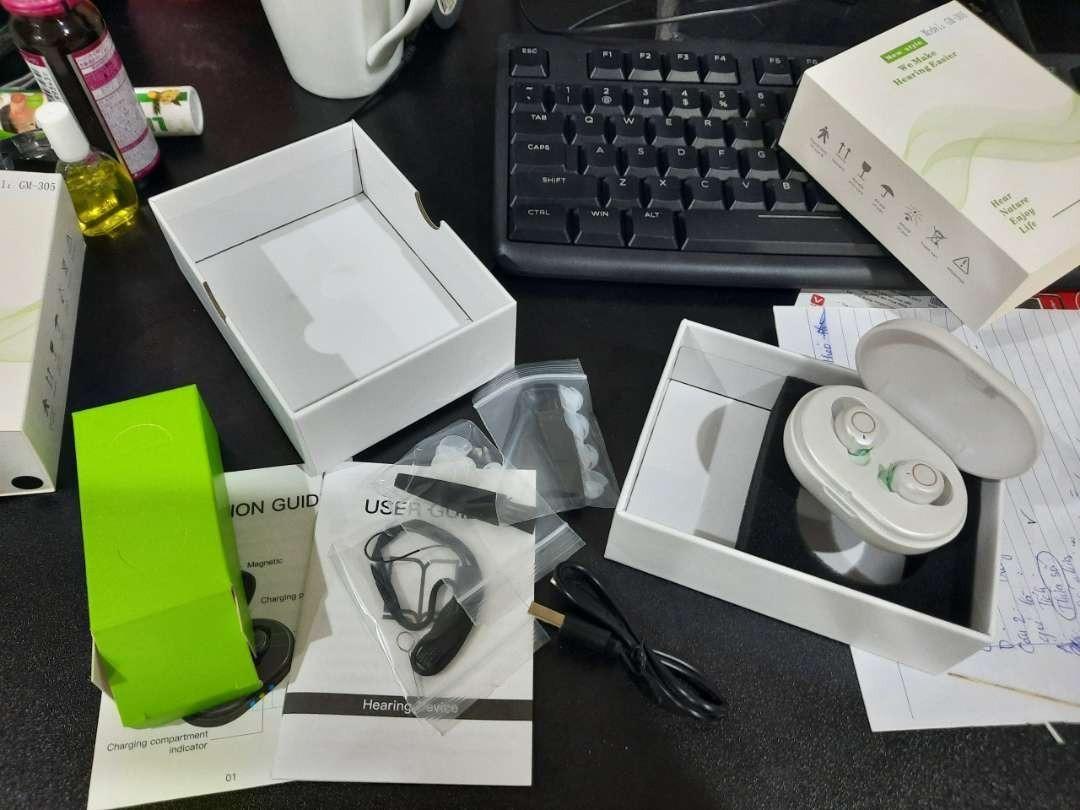Vỏ hộp rất đẹp, rất sang. Đầy đủ thẻ bảo hành, sách hướng dẫn. Hy vọng sản phẩm này có thể giúp bố tôi nghe rõ hơn.